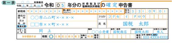 ケースA 申告書の提出の前年(令和5年中)に引っ越した場合、所得税申告書の現在の住所と令和6年1月1日の住所(住民税の住所)は一致するので、「同上」と記載します。